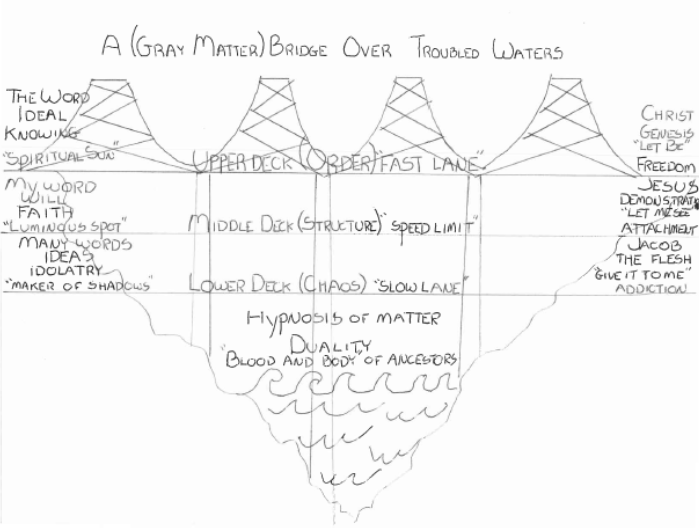 Gray matter is an instrument, just as a physical bridge is an instrument. What makes it unique is that it is not an instrument shown forth from the mortal mind and the constructs of the world. Gray matter is the bringing forth of Immortal Mind consciousness into the world as Christ. This instrument and its operation know nothing of the material or conditions, but only as Truth, Perfection and the Genesis Ideal that is “beyond belief.” On the gray matter bridge, nothing was ever broken, or missing, or lacking, so only what is Real is exposed. On the other side of this bridge, there is only the Light dissolving the gray, dissolving the matter, dissolving the shadow in the noonday sun of what Is.